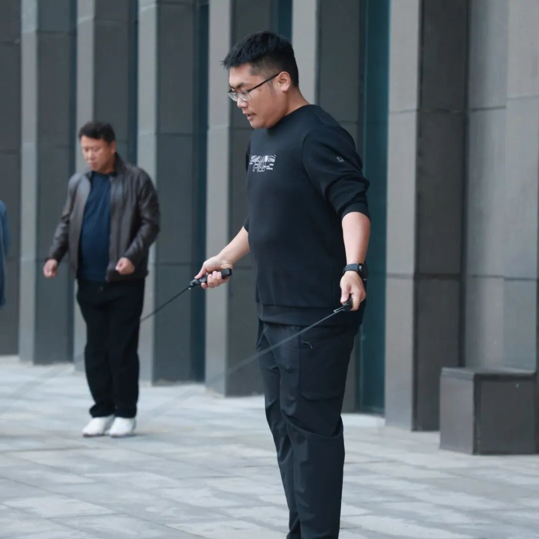 比賽設(shè)置了團(tuán)體大繩賽、單人競速賽和雙人協(xié)同賽三個項目,集競技性、趣味性和協(xié)作性于一體。參賽隊員在教練的帶領(lǐng)下開展熱身運動,通過拉伸、跳躍等動作激活身體,為即將開始的比賽做好準(zhǔn)備。